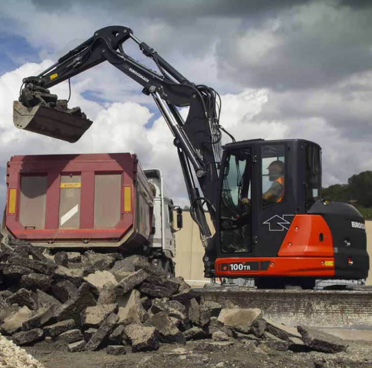 Der Bagger 100TR hat ein Transportgewicht von 10 Tonnen und bietet Kraft sowie Stabilität, die ideal für kleine und mittlere Baustellen sind. Dank seines Verstellauslegers bietet er eine größere Reichweite und einen verbesserten Rückzug: Dies erleichtert Grabearbeiten direkt an der Maschine sowie Beladevorgänge erheblich. Dieser für intensive Erdarbeiten konzipierte Kettenbagger garantiert hohe Leistungen und maximale Zuverlässigkeit im Einsatz.