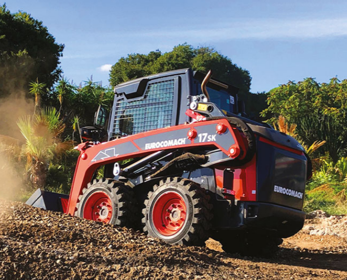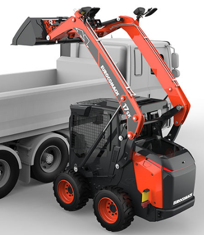 Der 17SK ist ein Kompaktlader (oder einfach Skid Steer) mit einem Betriebsgewicht von 3.600 kg, der entwickelt wurde, um Manövrierfähigkeit, Fahrgeschwindigkeit und Vielseitigkeit auf befestigten oder kompakten Oberflächen zu bieten. Er ist ideal für Materialtransport, Verladearbeiten und Einsätze in Außen- oder Industriebereichen.