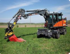 - Der Bagger kann mit diversen Anbaugeräten wie Sortiergreifern, Zweischalengreifern oder Hydraulikhämmern ausgestattet werden.